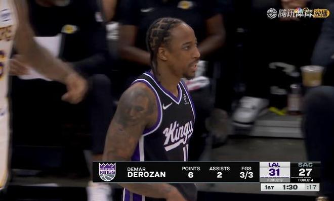 本场比赛,德罗赞出战40分钟,投篮22投9中,三分6中2,罚球1中1,贡献21分6篮板3助攻1抢断。